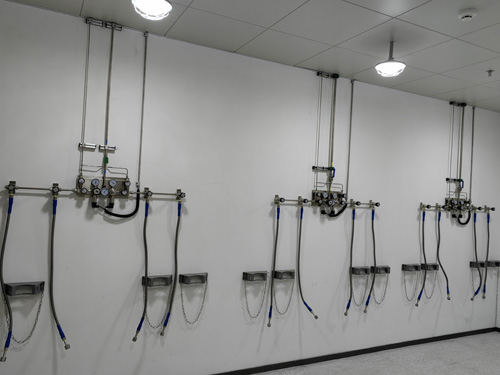 1.氣瓶間內的壓力調準控制面板與實驗設計辦公室的氣路終端設備之前選擇SS316LBA管通過對接,管網內面光滑整潔度為Ra<0.4umBA級管網。